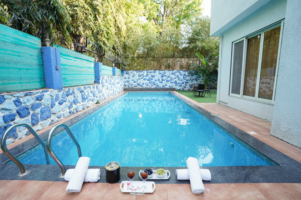 Experience luxury at its best at this spacious villa on Khandala Road, Lonavala. Featuring 4 AC bedrooms, 2 ACs in the hall, 4 private bathrooms, and 1 common washroom, it’s ideal for families and groups. Enjoy a private swimming pool with a baby pool, a well-equipped kitchen, dining area, and LED TVs. Entertainment includes a pool table, carrom, cards, music system, and Wi-Fi. With a refrigerator, barbeque setup, hot water geysers, battery backup, private parking, and an onsite caretaker, every comfort is covered. Perfect for relaxing getaways, this villa blends modern amenities with a serene location for an unforgettable stay.
